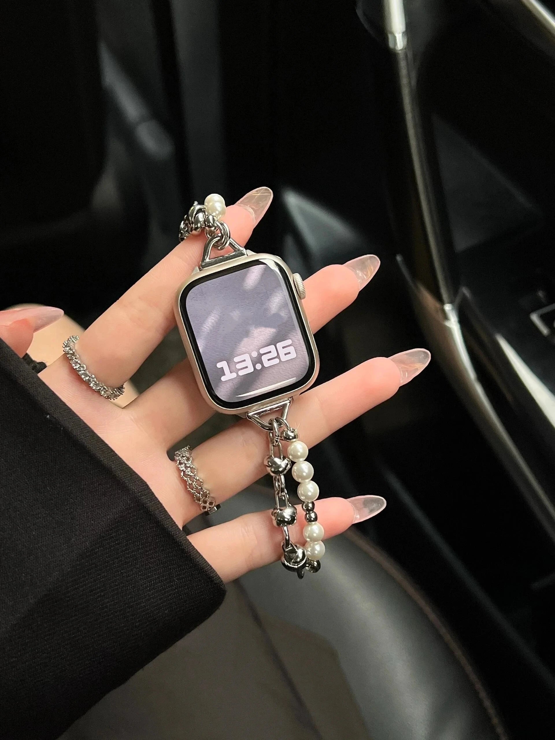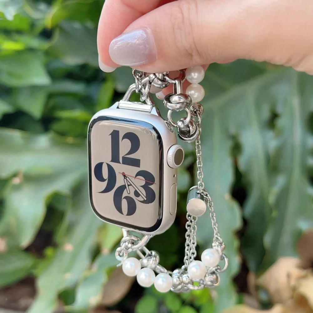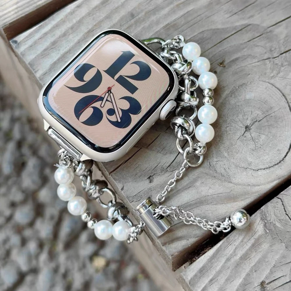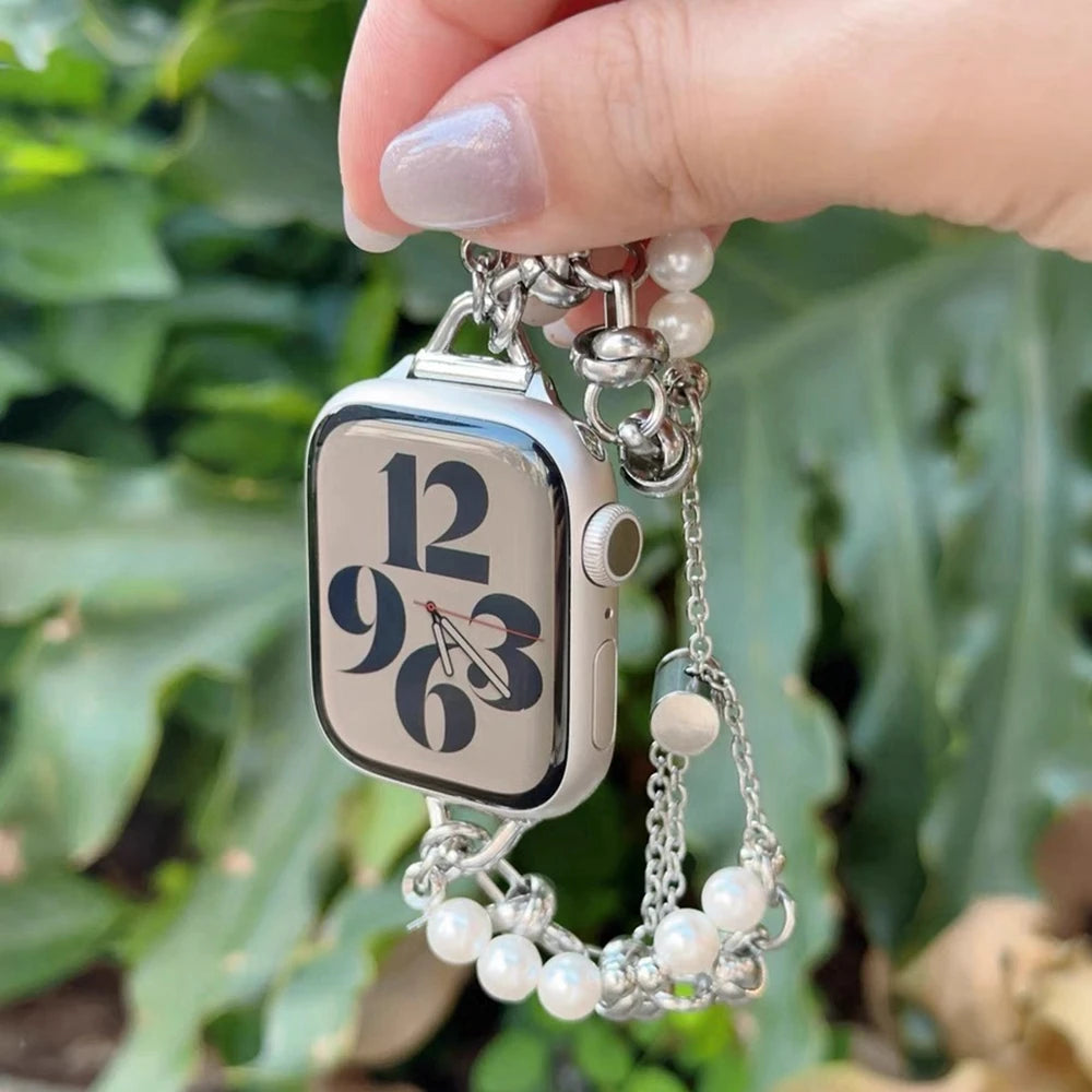 Beads Metal Loop Strap For Apple Watch Band For Women 38mm 40mm 41mm 42mm 44mm 45mm 46mm 49mm
