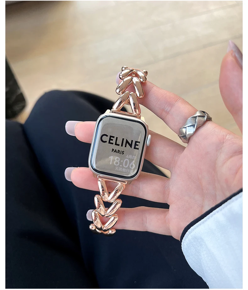 Design: Metal watch band,Women girl for iwatch strap,Unique design watch strap band,Love Heart Shape watch band,Hollow metal strap